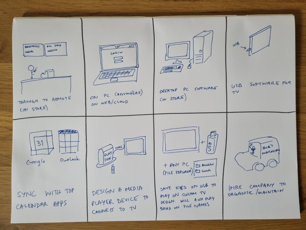 While some ideas were interesting not all were viable solutions (such as anything that would require hardware development). An interesting idea was the possibility of somehow getting it to sync with a Google or outlook calendar. As this may not be possible, it was thought that instead we could extract the functional ideas from these commonly used interfaces.